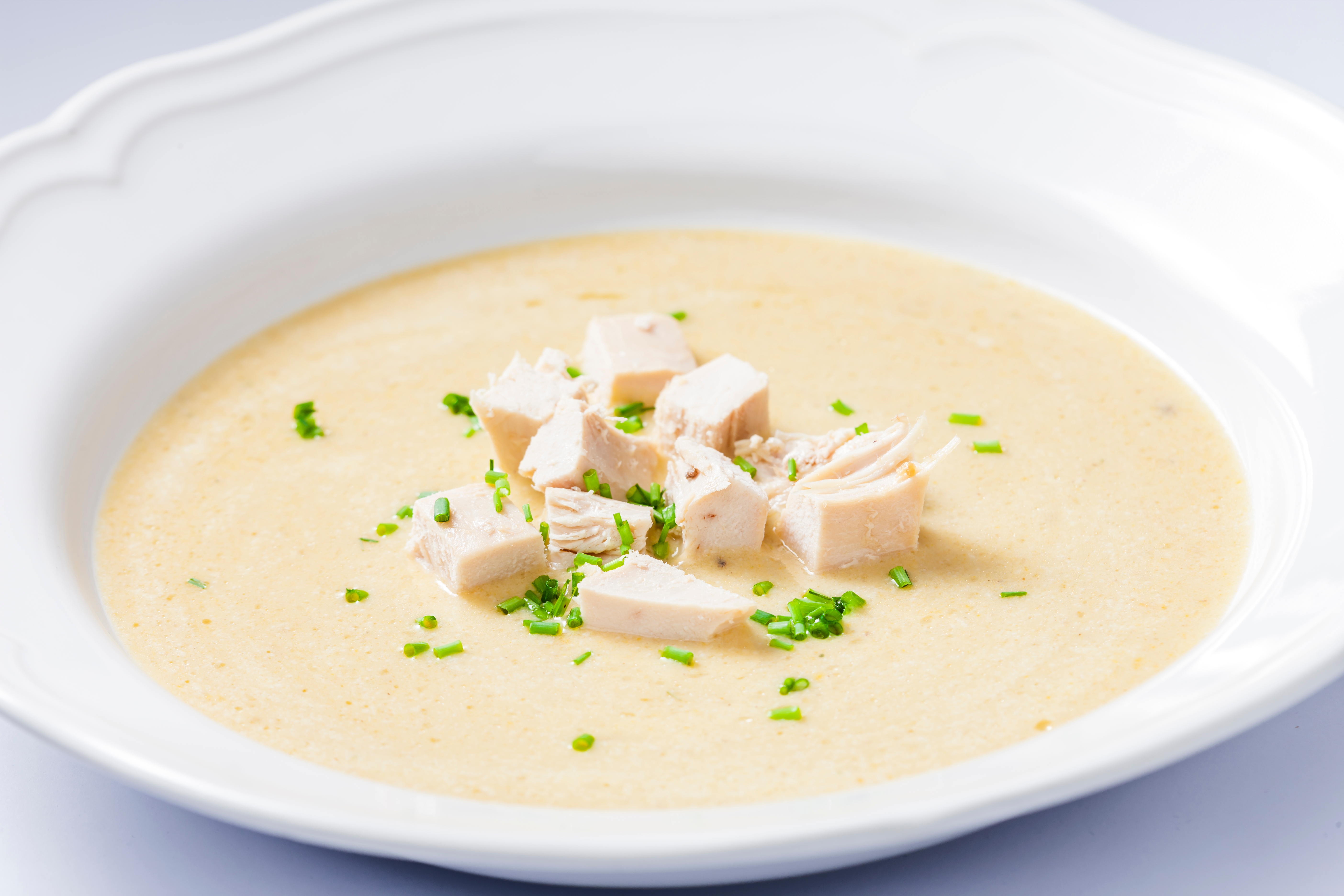 Made with chunks of juicy tender chicken, seared in garlic and butter, topped with cream. Italian and French flavours combine in this protein-rich velvety soup. Pair it with garlic bread and you’ve got yourself a delicious meal.